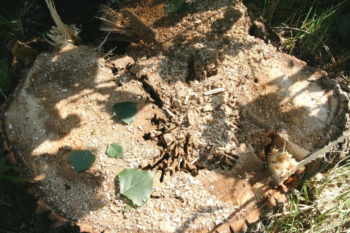 Dabei zeigte er auf mehrere Baumstrunke, die einen sehr dunklen Kern hatten, das zeigt, dass diese Bäume schon krank waren und keine Standfestigkeit mehr hatten. Auch sind Bäume dabei, die regelrecht von Ameisen zerfressen sind. Wir mussten hier sofort handeln, da einfach Gefahr im Verzug war, so Michael Pfeffer.